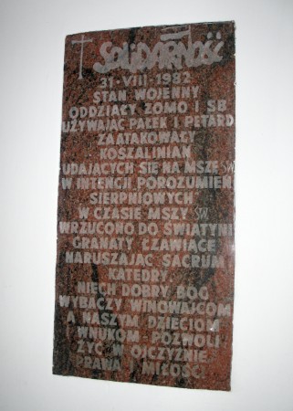 Dodano: 2008-09-18 Manifestacja z 31 sierpnia 1982 roku Profanacja świątyni Podczas przeprowadzania pacyfikacji manifestacji z 31 sierpnia 1982 roku przez oddziały ZOMO, doszło do wydarzenia bezprecedensowego w historii Koszalina - znieważenia świątyni.