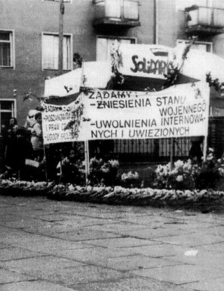 Dodano: 2008-10-12 Manifestacja z 1 maja 1982 roku Żądali zniesienia stanu wojennego, uwolnienia internowanych i uwięzionych, poszanowania godności i praw człowieka oraz zawarcia ugody społecznej. Odpowiedzią były aresztowania, więzienia, kolegia, represje.