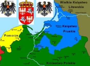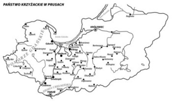 W 1226 roku książę Konrad I mazowiecki podarował Zakonowi Szpitala Najświętszej Marii Panny Domu Niemieckiego w Jerozolimie (Krzyżakom) ziemię chełmińską, z której zakon dokonywał podboju Prusów. Przez następne 200 lat Krzyżacy kolonizowali Prusy i budowali swoje państwo. Na historycznych terenach Prus powstało najpierw państwo zakonu krzyżackiego ze stolicą w Malborku, a od roku 1466 roku (II pokój toruński) Prusy Zakonne (nazywane tak w odróżnieniu do Prus Królewskich przyłączonych do Polski) ze stolicą w Królewcu.