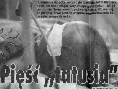 9 listopada 2005 roku do koszalińskiego szpitala przywieziono 14-miesięczne dziecko. Niemowlak był w stanie krytycznym. Już pierwsze oględziny skłoniły lekarzy do podjęcia decyzji o natychmiastowym zawiadomieniu policji. Jak się okazało, Jakubek został skatowany przez Jarosława O., żyjącego z nieformalnym związku z matką dziecka. W lipcu 2006 roku, już podczas trwania procesu sądowego, Głos Koszaliński pisał: "Mężczyznę denerwowało to, że malec nie chce sam usypiać i płacze. Postanowił go tego "nauczyć". Wieczorem kładł się w łóżku obok chłopca i gdy ten zaczynał płakać, uderzał go otwartą ręką albo pięścią w głowę. W listopadzie [2005] skatował Kubę tak strasznie, że dziecko trafiło do szpitala w Koszalinie w śpiączce, z połamaną czaszką i obrzękiem mózgu. Szanse na przeżycie miało minimalne. Uratowała je szybka reakcja naszych lekarzy. Ale najprawdopodobniej dziecko nigdy nie wróci do pełnego zdrowia. Dziś ma niedowład prawej ręki i nogi, musi też nosić ochronny kask, bo podczas operacji usunięto mu część kości czaszki".