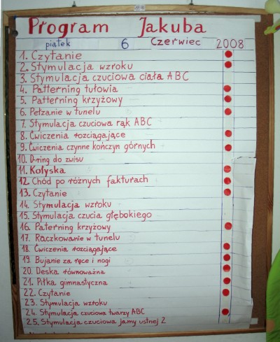 Obecnie Jakubek wymaga stałych, intensywnych zabiegów rehabilitacyjnych. Codziennie uczestniczy w zajęciach fizjoterapii w koszalińskim szpitalu, prowadzonych przez doktor Wiesławę Krzysztofik-Bogacką, wspomaganą przez rehabilitantki: Wiesławę Czarnecką oraz panie Lidę i Milenę. Dziecko korzysta tutaj z całego zestawu zabiegów - masaży, ćwiczeń mięśniowych, kąpieli z masażem wodnym. Dwa razy w ciągu roku Jakubek jedzie nad morze do sanatorium, do Pomorskiego Centrum Rehabilitacji w Jarosławcu. Również dwa razy do roku trafia do mieszczącej się w Toruniu fundacji dzieci niepełnosprawnych "Daj Szansę". Tutaj, pod kierunkiem dr Anny Grochal, ustalane są dla niego indywidualne programy rehabilitacji w warunkach domowych. Jakubkowi pomagają też panie z koszalińskiego Miejskiego Ośrodka Pomocy Społecznej (Rejon Pracy Socjalnej Nr 4 przy ul. Podgórnej) - Ewa Antoszak i I. Bubnowicz. Co ciekawe, panie z MOPS chcą włączyć się także w akcję pomocy po godzinach pracy, poświęcając swój prywatny czas. Z dzieckiem utrzymuje kontakty także jego mama.