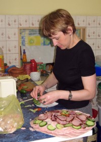 | | Marzena Rytszel z KOMK podczas przygotowywania potraw |