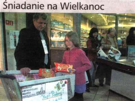 W sobotę koszaliński radny Rady Miejskiej o kawaler Orderu Uśmiechu Stefan Romecki wraz z członkami Komitetu Obywatelskiego Miasta Koszalina i uczniami zbierał żywność na paczki i śniadanie wielkanocne dla ubogich i samotnych mieszkańców miasta.